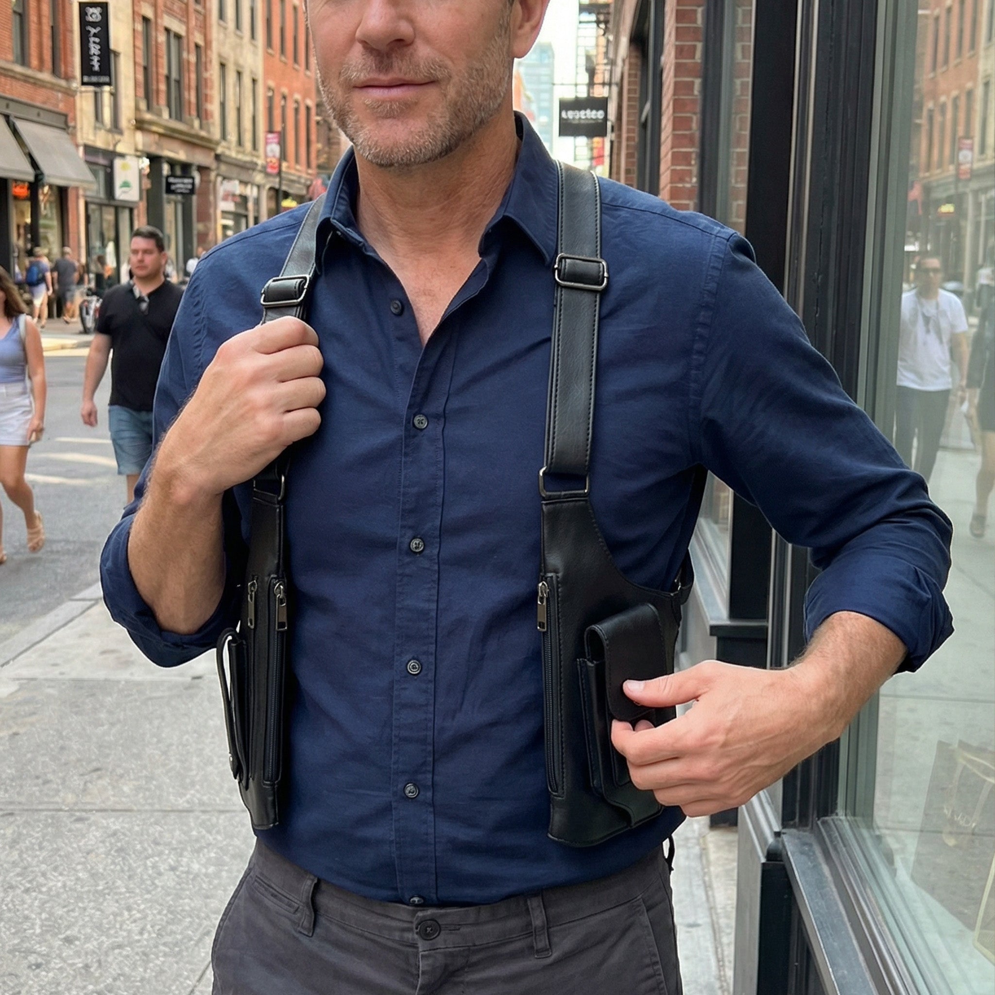 Whether you’re a smaller guy, gal or have a broad chest, the industrial-grade adjustable strap lets you dial in the perfect fit. Tighten it high against your ribs for a snug feel that disappears under your jacket, or loosen it for a relaxed carry over a hoodie. One size truly fits all—securely and comfortably.