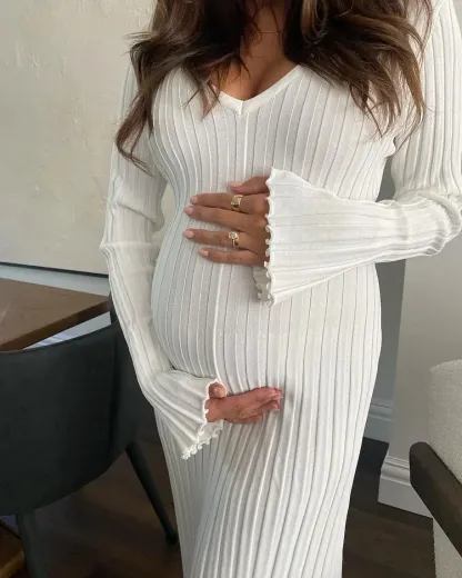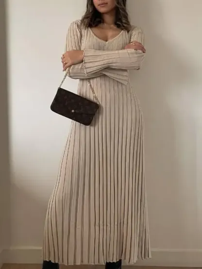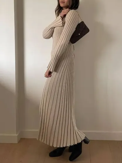 2024 Fall New Sleeved Knit Midi Dress is designed to provide a flattering fit with its ribbed knit construction and a-line silhouette. Constructed from a soft and stretchy fabric, this dress is ideal for everyday wear. The ribbed fabric creates a slim and stylish shape, perfect for all kinds of occasions.