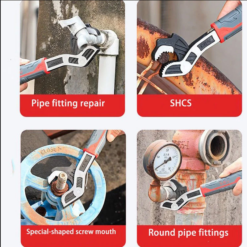 Introducing our Multifunctional Self-locking Wrench, a versatile pipe wrench tool designed for industrial-grade applications. This high-quality wrench is engineered to provide maximum grip and torque, making it suitable for various plumbing, construction, and mechanical tasks. Its self-locking mechanism ensures a secure hold on pipes and nuts, allowing for efficient and hassle-free work. With its durable construction and ergonomic design, this wrench offers reliability and comfort during prolonged use. Upgrade your toolbox with this multifunctional tool and tackle your projects with ease.