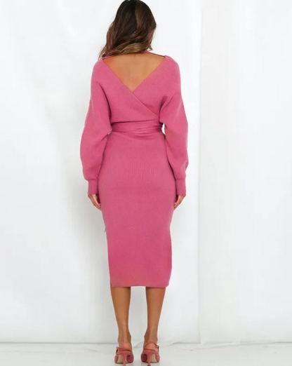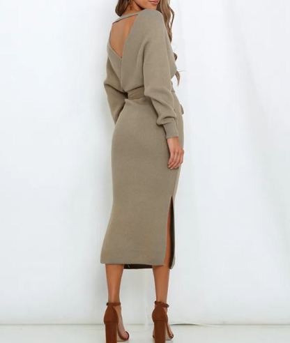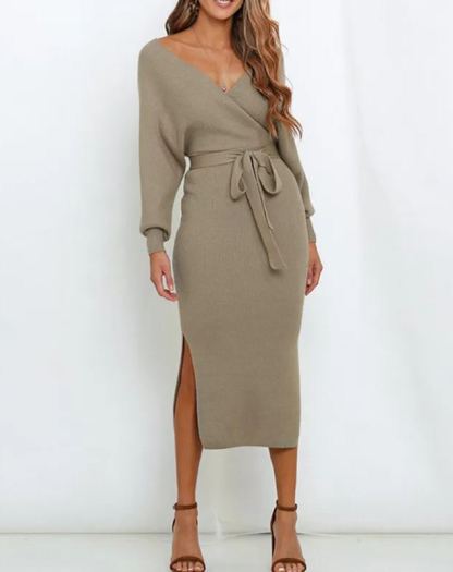 Women's Wrap V Neck Slit Sweater Dresses (Buy 2 Free Shipping)